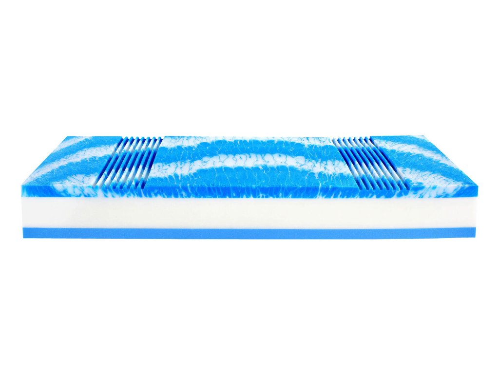 Strana RELAX obsahuje hybridní pěnu GelTouch, která kombinuje jemnost latexu s výborným rozložením tlaku typickým pro gelové matrace. Je extrémně prodyšná a skvěle odvádí teplo. Strana HARD využívá klasickou hybridní pěnu – pružnou, poddajnou, mimořádně odolnou. Tuhé studené pěnové jádro pak zajišťuje pevnost, oporu a dlouhou životnost matrace.