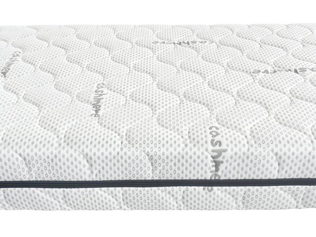 Cashmere Grey působí luxusně a zároveň je praktický. Větrací systém v potahu podporuje proudění vzduchu a minimalizuje vlhkost v jádru. Termoregulace chrání před přehřátím i chladem. Potah je příjemný na dotek, dvoudílný a pratelný na 40 °C pro maximální hygienu.