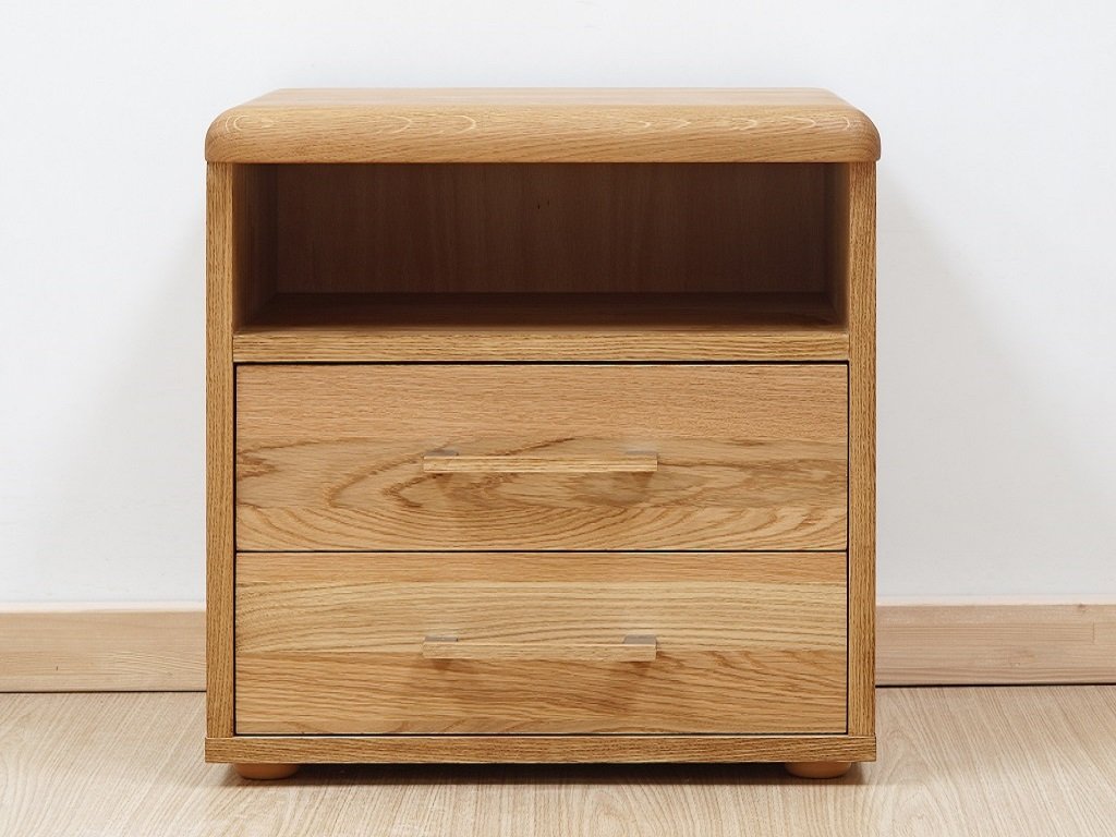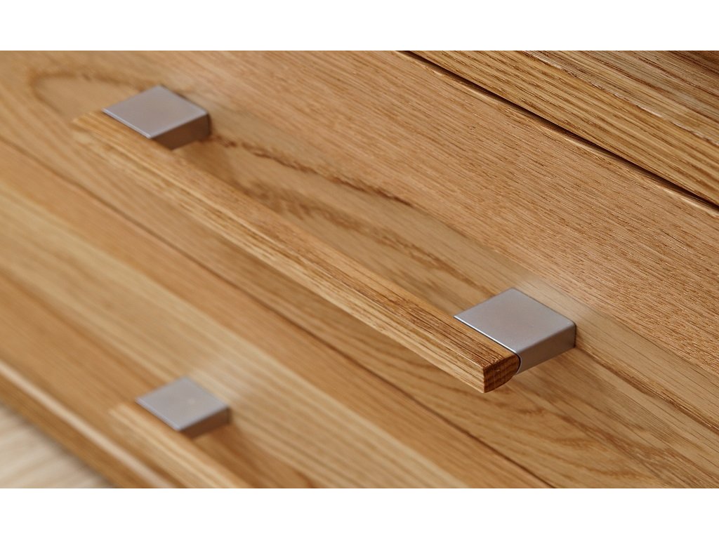 V provedení Buk/Dub se jedná o kombinaci přírodní dýhy (boky, dna a mezistěny), masivního dřeva (horní desky a přední plochy) a masivní bukové překližky (obvody zásuvek a záda komod).