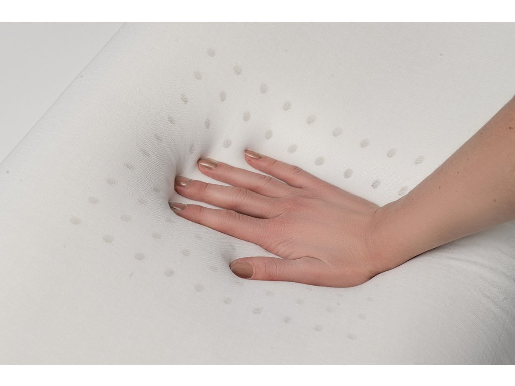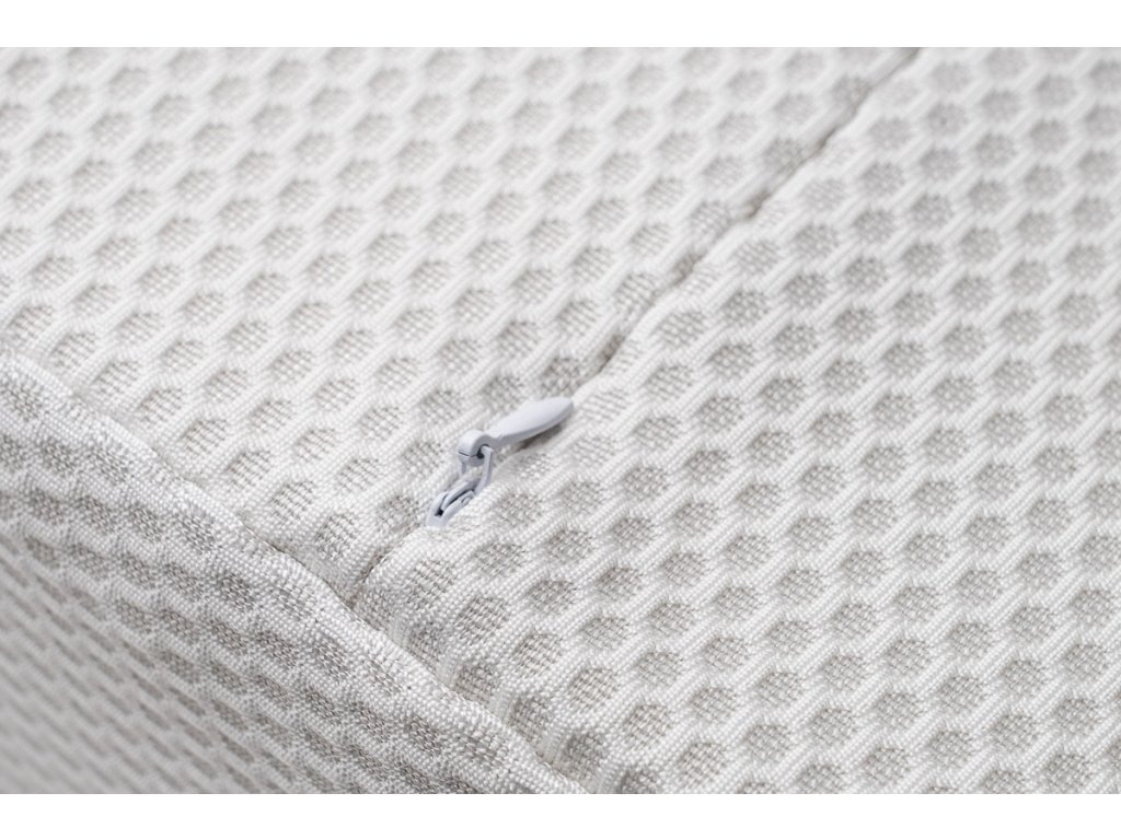 Polštář v ergonomickém tvaru vlny udržuje krční páteř ve správné poloze, zatímco snímatelný a pratelný patentovaný potah z textilie Outlast a 3D větrací lem zaručují maximální prodyšnost a termoregulaci.