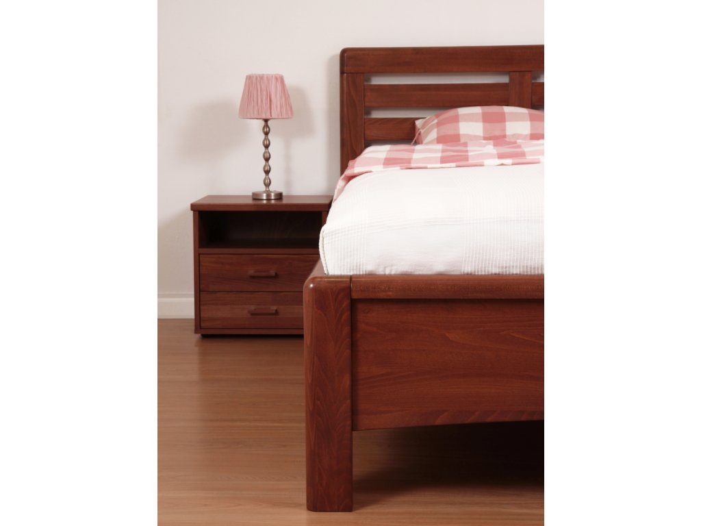 Postel je vyrobena z vysoce kvalitního přírodního materiálu. Masivní bukové nebo dubové dřevo o tloušťce 40 mm poskytuje lůžku stabilní a pevnou konstrukci, která vydrží v perfektním stavu desítky let. Můžete vybírat ze tří typů materiálu, jádrový buk, průběžný buk a dub.