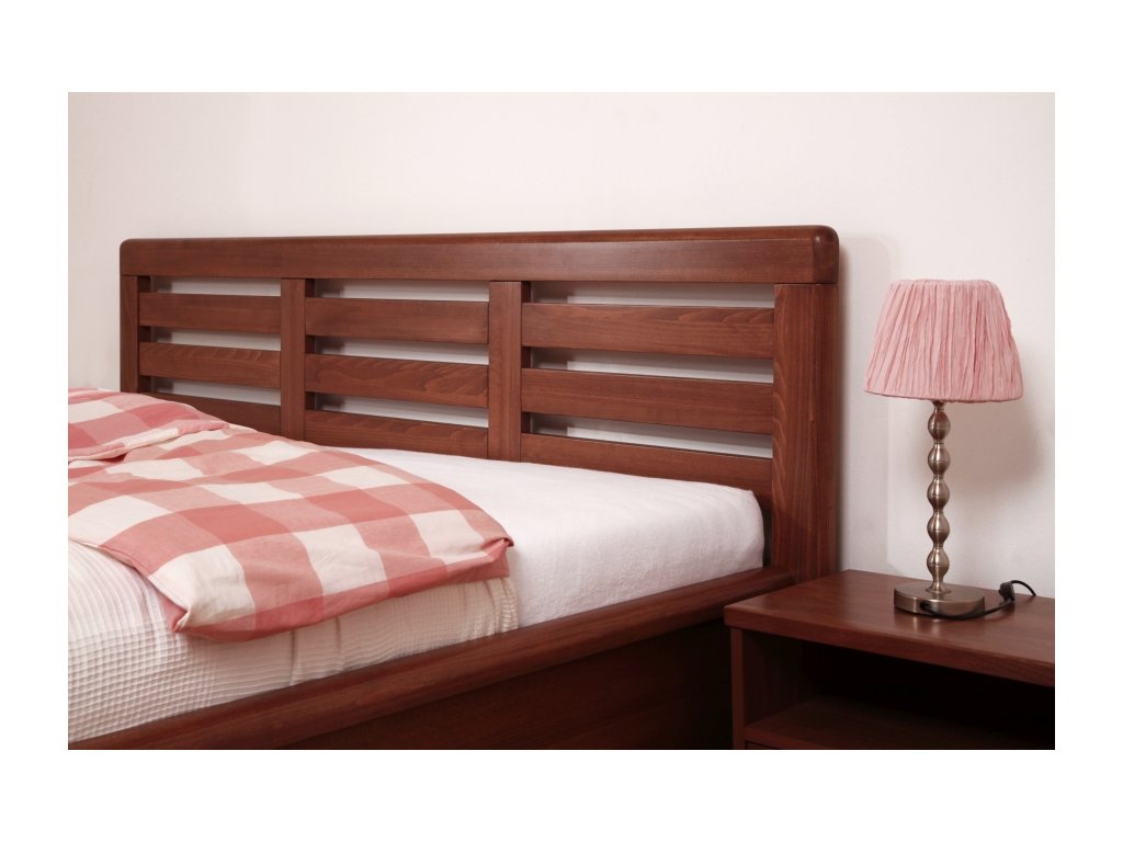 Moderní postel s členitým čelem v sobě spojuje praktické využití s dokonale propracovanými liniemi. Její masivní vzhled je určen zejména do prostornějších ložnic. Průřezy v čele postele vytváří rovné linie, které se důmyslně doplňují s jemně zaoblenými hranami po celé konstrukci postele. Vysoce kvalitní postel české výroby zajišťuje pohodlné a zdravé ležení.
