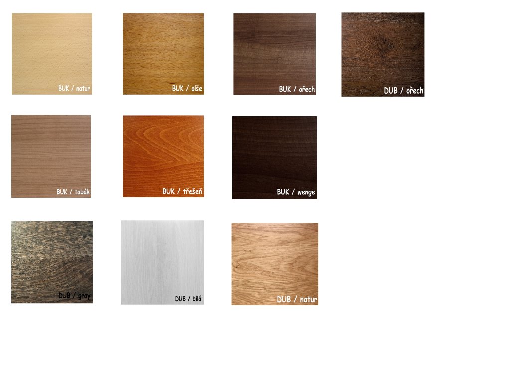 | Odstín BUK: | Natur, tabák, ořech, olše, třešeň, wenge |
