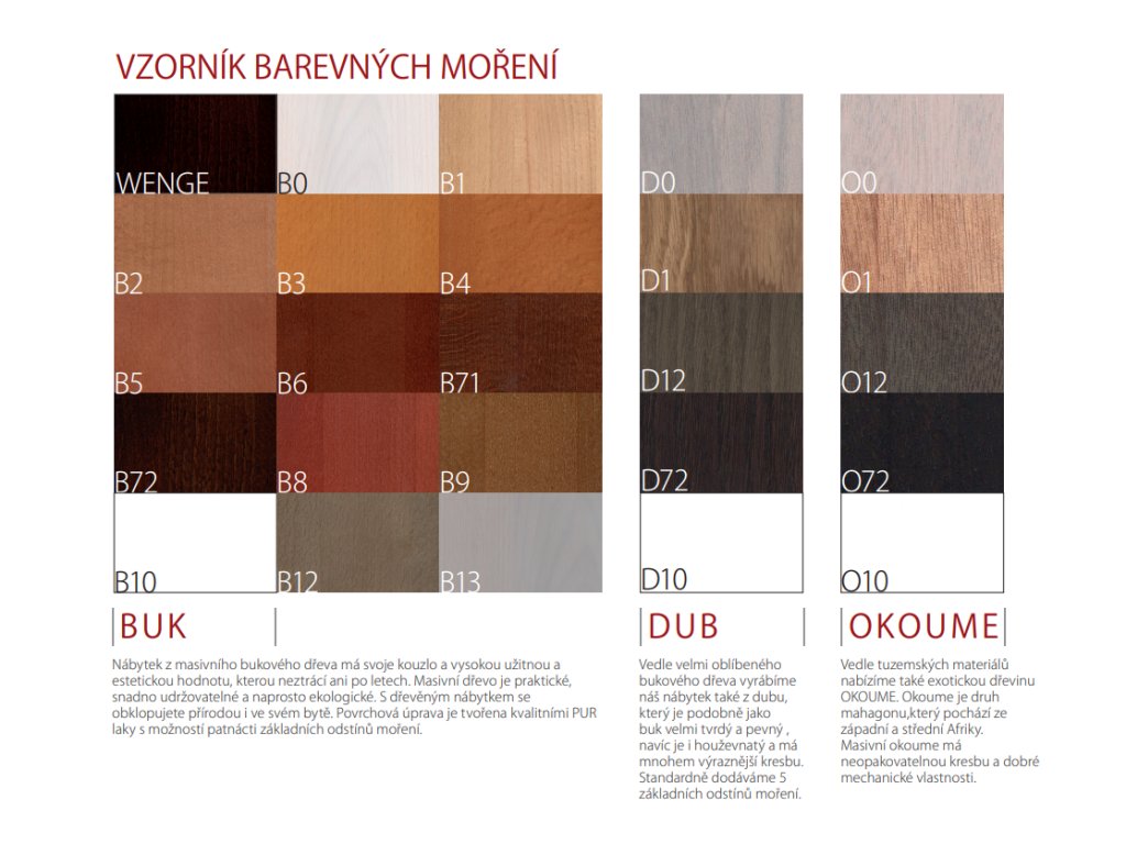 - nabídka dřevin a barev moření viz.vzorník