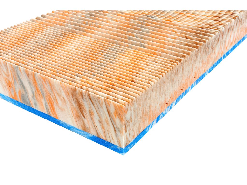 Sendvičová konstrukce ze dvou různě tuhých pěn Flexifoam® zajišťuje pevnou, odolnou a dobře větranou oporu. Pevnější strana Hard je ideální pro ty, kteří potřebují stabilitu, zdravé uložení páteře a rovnoměrné rozložení tlaku při vyšší váze.