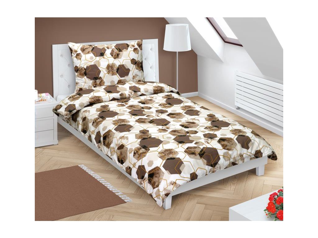 Povlečení bavlněné s hotelovou kapsou hnědé plástve 140x200,70x90 cm
