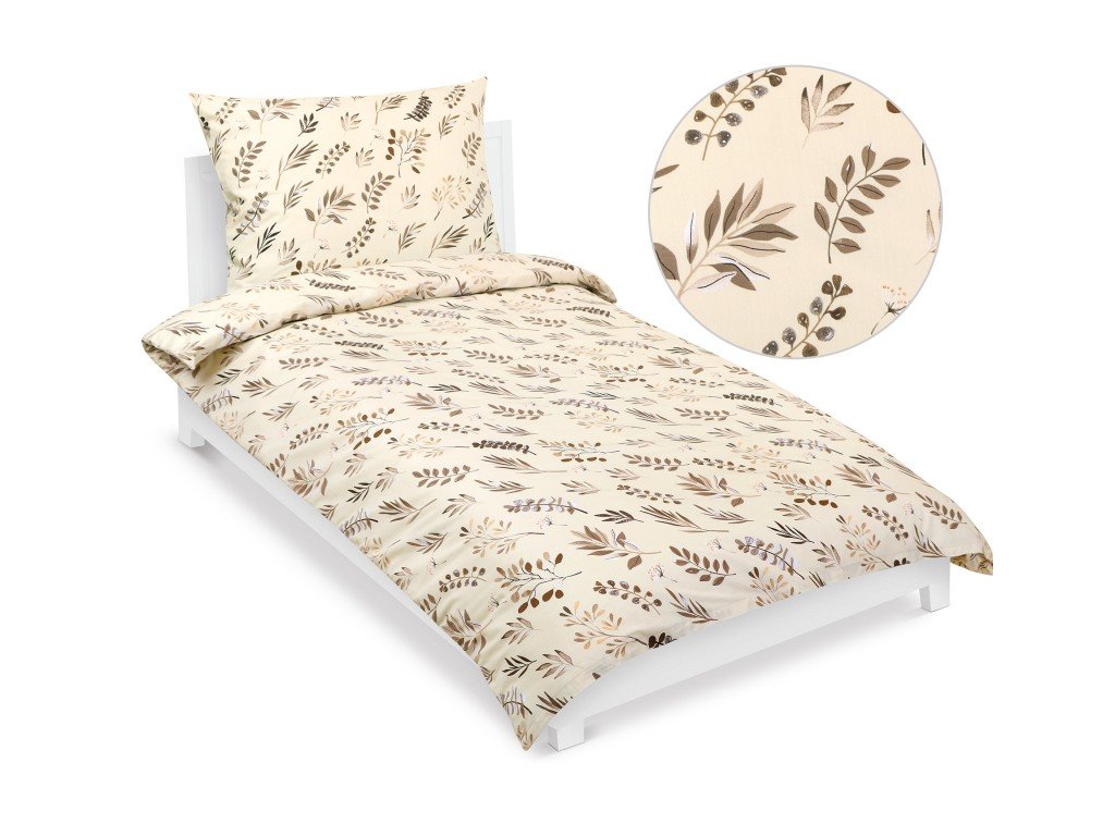 Povlečení bavlněné s hotelovou kapsou Větvička hnědá, béžová 140x200, 70x90 cm